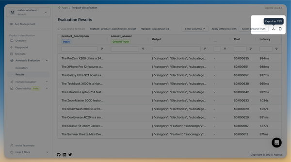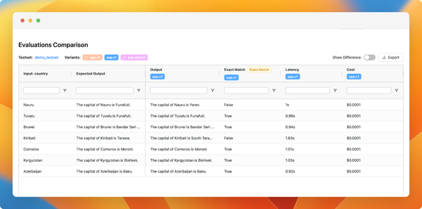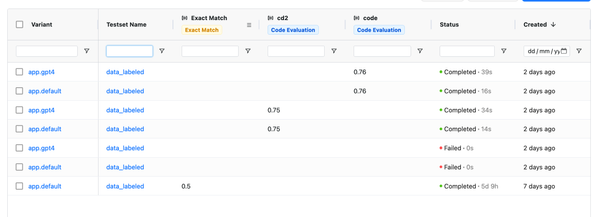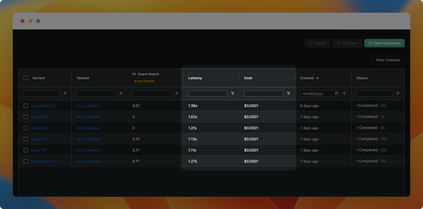 - Dashboard Improvements: We've upgraded our dashboard interface to better display evaluation results. You can now filter and sort results by evaluator, test set, and outcomes.