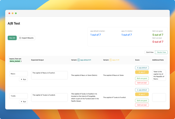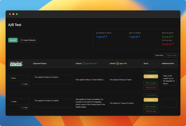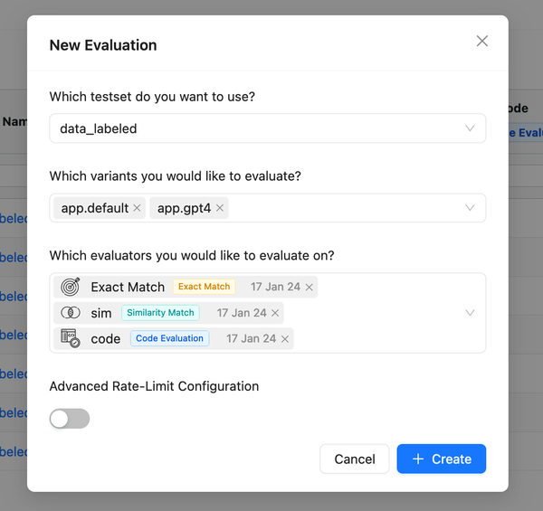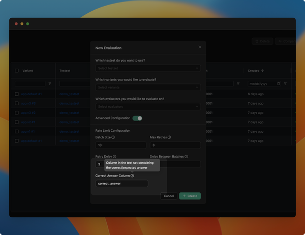 - Simultaneous Evaluations: You can now run multiple evaluations for different app variants and evaluators concurrently.