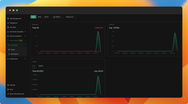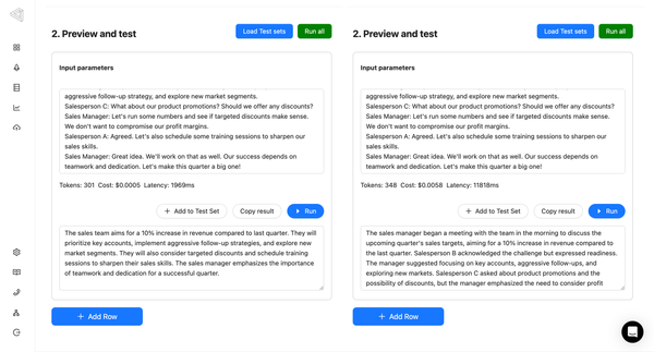 We've added a feature that allows you to compare the time taken by an LLM app, its cost, and track token usage, all in one place.
